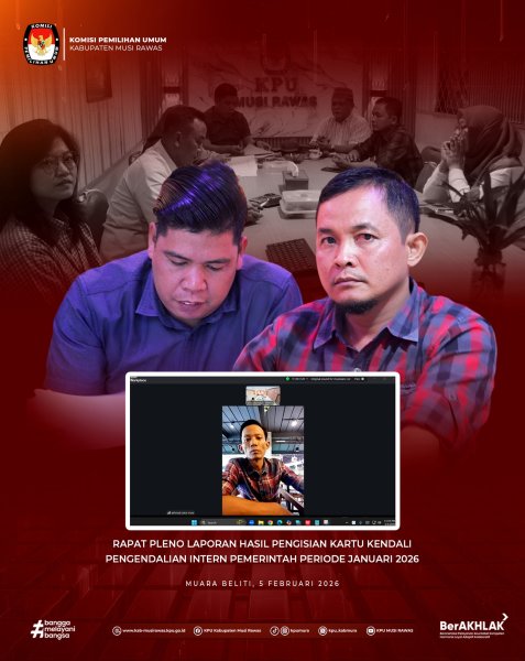 #TemanPemilih, KPU Kabupaten Musi Rawas melaksanakan Rapat Pleno Laporan Hasil Pengisian Kartu Kendali Sistem Pengendalian Intern Pemerintah Periode Januari 2026 diLingkungan KPU Kabupaten Musi Rawas (5/2/2026) ..