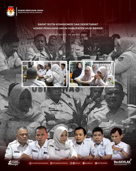 #TemanPemilih, Mengawali aktivitas pada Senin pagi di lingkungan KPU Kabupaten Musi Rawas, jajaran komisioner dan sekretariat menggelar rapat rutin pasca libur Lebaran. Acara dibuka oleh Bapak Yogi Juli Saputra, S.P. yang mengawali dengan permohonan maaf lahir dan batin, serta menekankan pentingnya kolaborasi dalam program sosialisasi seperti podcast bersama pihak eksternal.