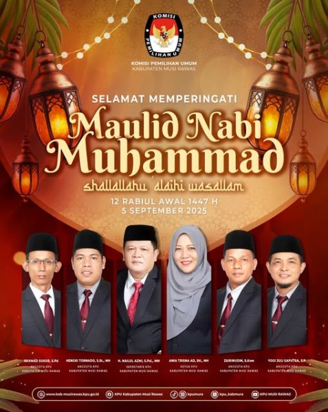 #TemanPemilih, segenap keluarga besar KPU Kabupaten Musi Rawas mengucapkan Selamat Memperingati Maulid Nabi Muhammad SAW, 12 Rabiul Awal 1447 H / 5 September 2025 ..