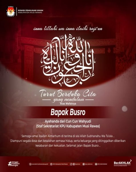 #TemanPemilih, segenap jajaran KPU Kabupaten Musi Rawas turut berduka cita atas berpulangnya Bapak Busro (Ayahanda dari Cun Cun Wahyudi - Staf Sekretariat KPU Kabupaten Musi Rawas) ..