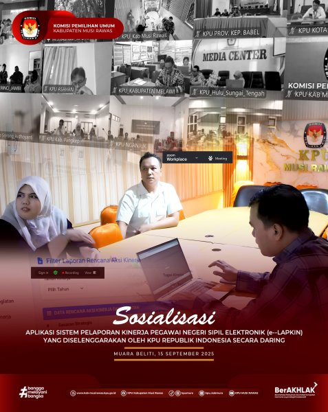 #TemanPemilih, KPU Kabupaten Musi Rawas mengikuti Sosialisasi Sistem Pelaporan Kinerja Pegawai Negeri Sipil Elektronik (e-LAPKIN) yang diselenggarakan oleh KPU Republik Indonesia secara daring (15/9/2025) ..