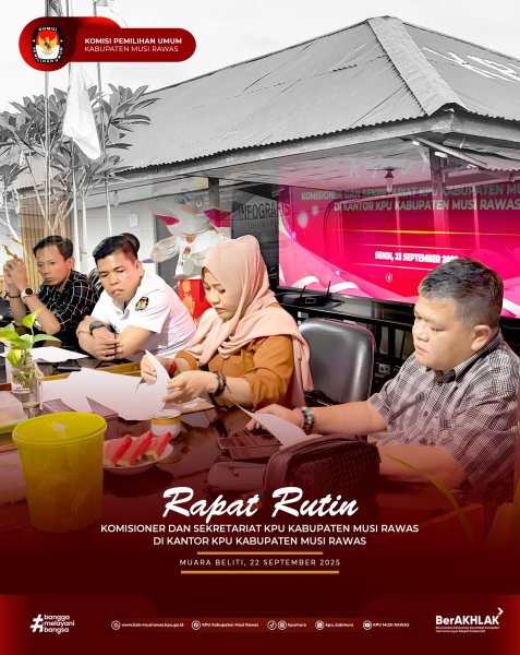 #TemanPemilih, Komisioner dan Sekretariat KPU Kabupaten Musi Rawas melaksanakan Rapat Rutin di Kantor KPU Kabupaten Musi Rawas (22/9/2025) ..