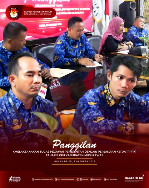 #TemanPemilih, 4 staf Sekretariat KPU Kabupaten Musi Rawas memenuhi panggilan tugas Pemerintah dengan Perjanjian Kerja (PPPK) Tahap II Tenaga Teknis Sekretariat KPU Kabupaten Musi Rawas tahun anggaran 2024 di Kantor KPU Kabupaten Musi Rawas (1/10/2024) . ..
