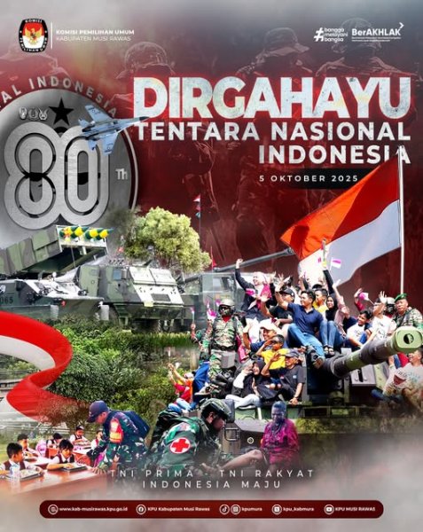 #TemanPemilih, segenap jajaran KPU Kabupaten Musi Rawas mengucapkan Dirgahayu TNI ke-80 Tahun 2025.
