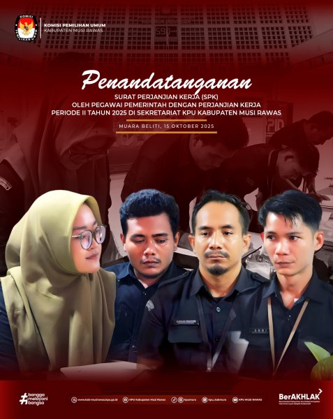 #TemanPemilih, KPU Kabupaten Musi Rawas melaksanakan Penandatanganan Surat Perjanjian Kerja Pegawai Pemerintah dengan Perjanjian Kerja (PPPK) Periode II Tahun 2025 Sekretariat KPU Kabupaten Musi Rawas (15/10/2025) ..