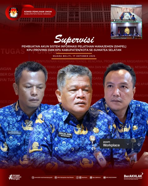 #TemanPemilih, KPU Kabupaten Musi Rawas mengikuti Kegiatan Supervisi pembuatan akun SiMPEL yang dilakukan secara daring melalui Zoom Meeting (17/10/2025)..