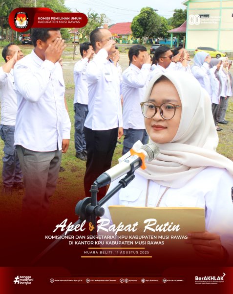 #TemanPemilih, Komisioner dan Sekretariat KPU Kabupaten Musi Rawas melaksanakan APel dan Rapat Rutin di Kantor KPU Kabupaten Musi Rawas (11/8/2025) ..