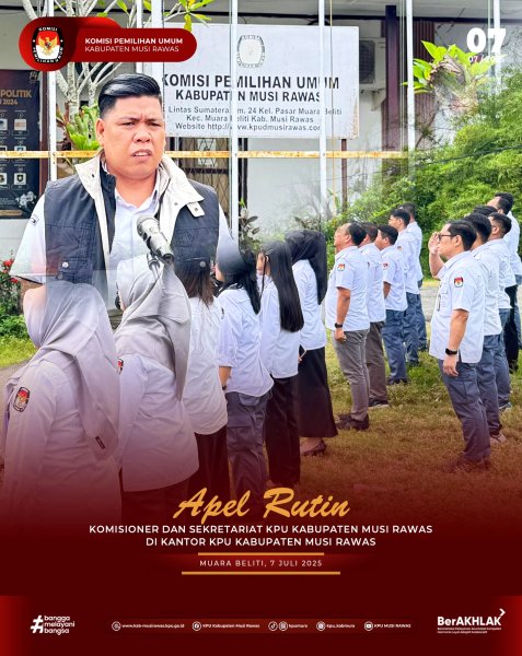 #TemanPemilih, KPU Kabupaten Musi Rawas melaksanakan Apel Rutin di Kantor KPU Kabupaten Musi Rawas (7/7/2025) ..