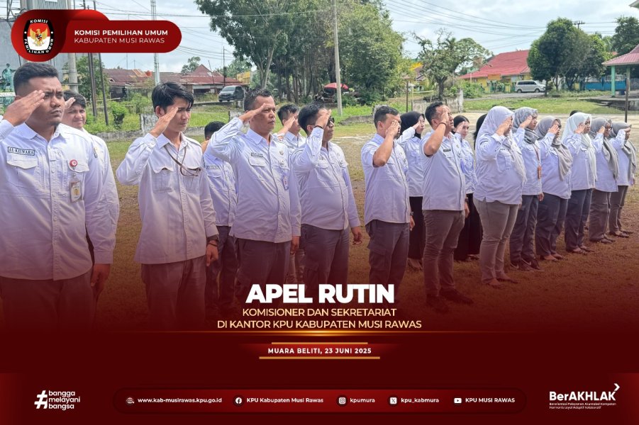 #TemanPemilih, Komisioner dan Sekretariat KPU Kabupaten Musi Rawas melaksanakan Apel Rutin di Kantor KPU Kabupaten Musi Rawas (23/6/2025) ..