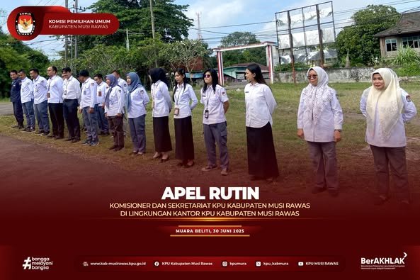 #TemanPemilih, KPU Kabupaten Musi Rawas melaksanakan Apel Rutin di Kantor KPU Kabupaten Musi Rawas (30/6/2025) ..