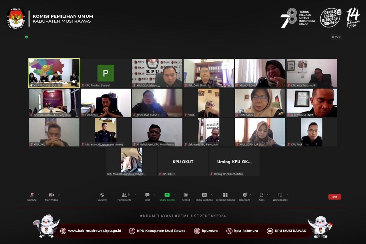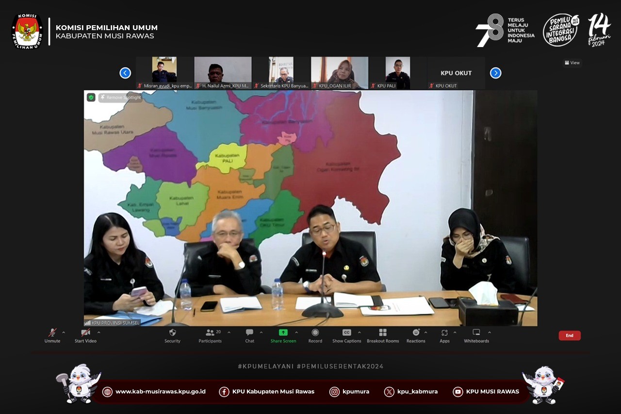 #TemanPemilih, Sekretaris KPU Kabupaten Musi Rawas, H. Nailul Azmi, S.Psi., MM mengikuti zoom meeting dalam rangka mendengar arahan dari Plt. Sekretaris KPU Provinsi Sumatera Selatan kepada Sekretaris KPU Kabupaten/Kota Se-Sumatera Selatan (6/9/2023) ..