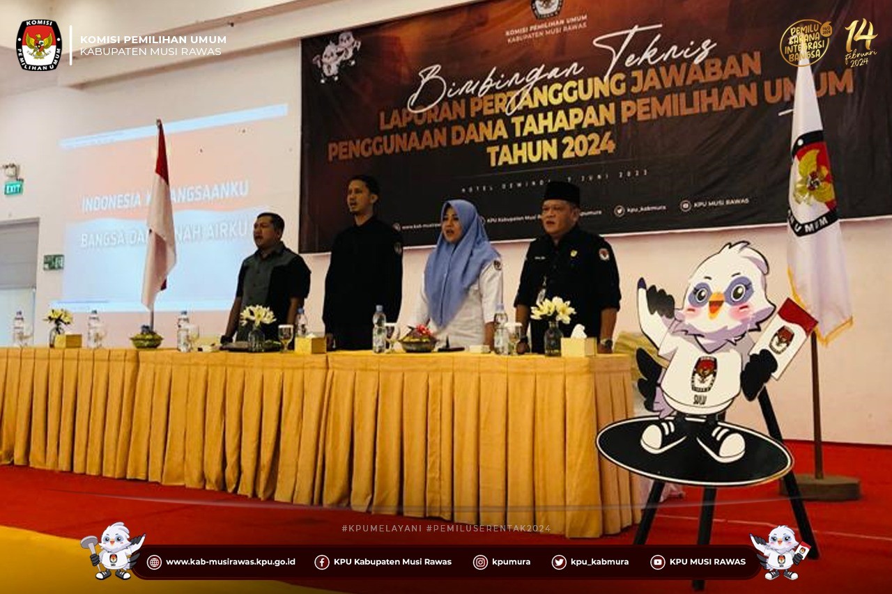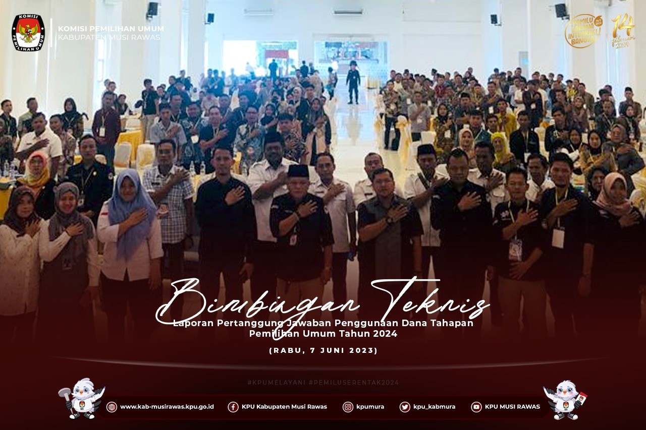 #TemanPemilih, KPU Kabupaten Musi Rawas melaksanakan Bimbingan Teknis Laporan Pertanggung Jawaban Penggunaan Dana Tahapan Pemilihan Umum Tahun 2024 di Hotel Dewinda (7/6/2023) ..