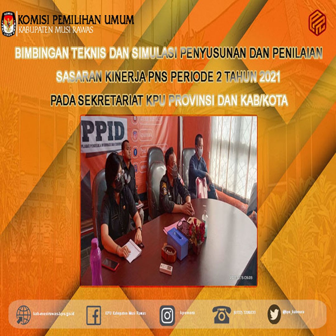 KPU Kabupaten Musi Rawas mengikuti Bimtek dan Simulasi Penyusunan dan Penilaian SKP Periode 2 Tahun 2021 pada Sekretariat KPU Provinsi dan Kab/Kota secara daring dalam rangka penyusunan SKP periode 2 menjelang akhir tahun 2021.