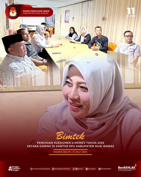 #TemanPemilih, KPU Kabupaten Musi Rawas mengikuti Bimbingan Teknis Pengisian kuesioner pada Aplikasi E-Monev Tahun 2025 secara daring di Kantor KPU Kabupaten Musi Rawas (11/7/2025) ..