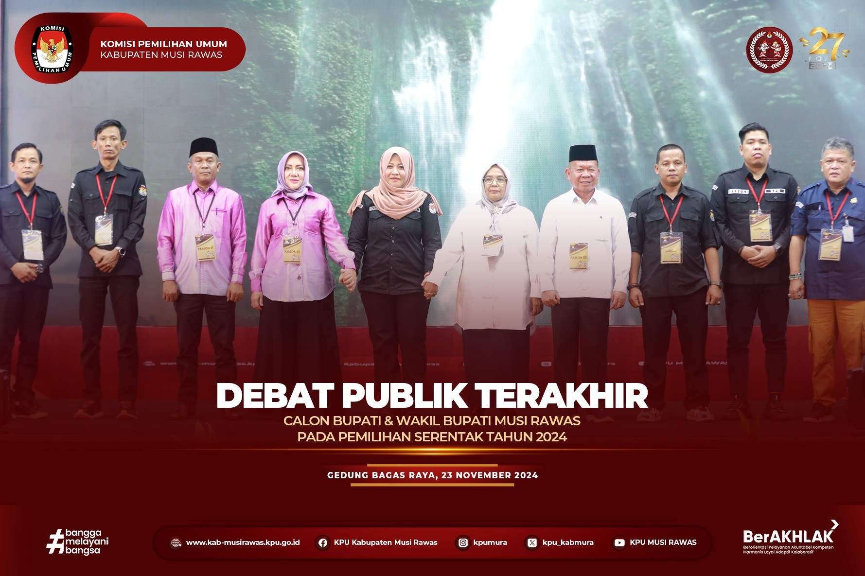 #TemanPemilih, KPU Kabupaten Musi Rawas Menyelenggarakan Debat Publik Terakhir Pasangan Calon Bupati & Wakil Bupati Musi Rawas Tahun 2024 di Gedung Bagas Raya Lubuklinggau (24/11/2024) ..