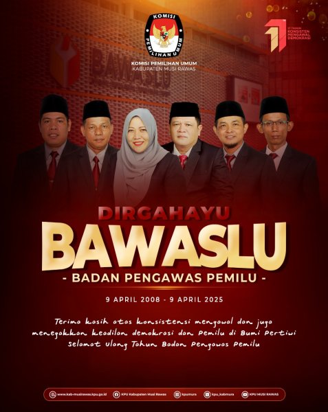 #TemanPemilih, segenap jajaran KPU Kabupaten Musi Rawas mengucapkan Dirgahayu Badan Pengawas Pemilu (BAWASLU) yang ke 17 Tahun . ..