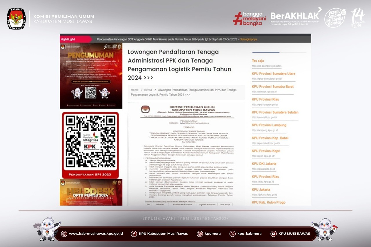 #TemanPemillih, Berikut Kami sampaikan Dokumentasi Pengumuman Penerimaan Tenaga Administrasi PPK dan Tenaga Pengamanan Tempat Penyimpanan Logistik Pemilu Tahun 2024 (Oktober - November 2023) ..