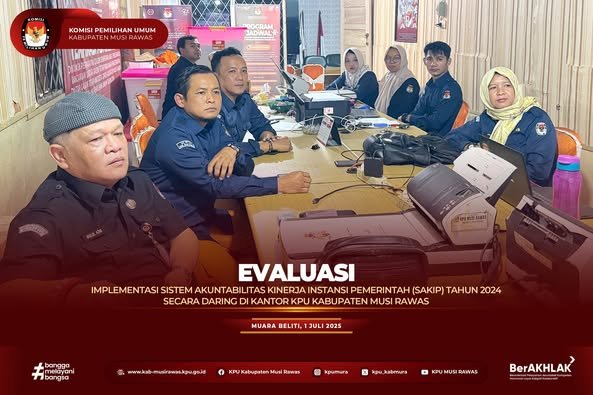 #TemanPemilih, KPU Kabupaten Musi Rawas mengikuti Entry Meeting Evaluasi Sistem Akuntabilitas Kinerja Instansi Pemerintah (SAKIP) Tahun 2024 secara daring di Kantor KPU Kabupaten Musi Rawas (1/7/2025) ..