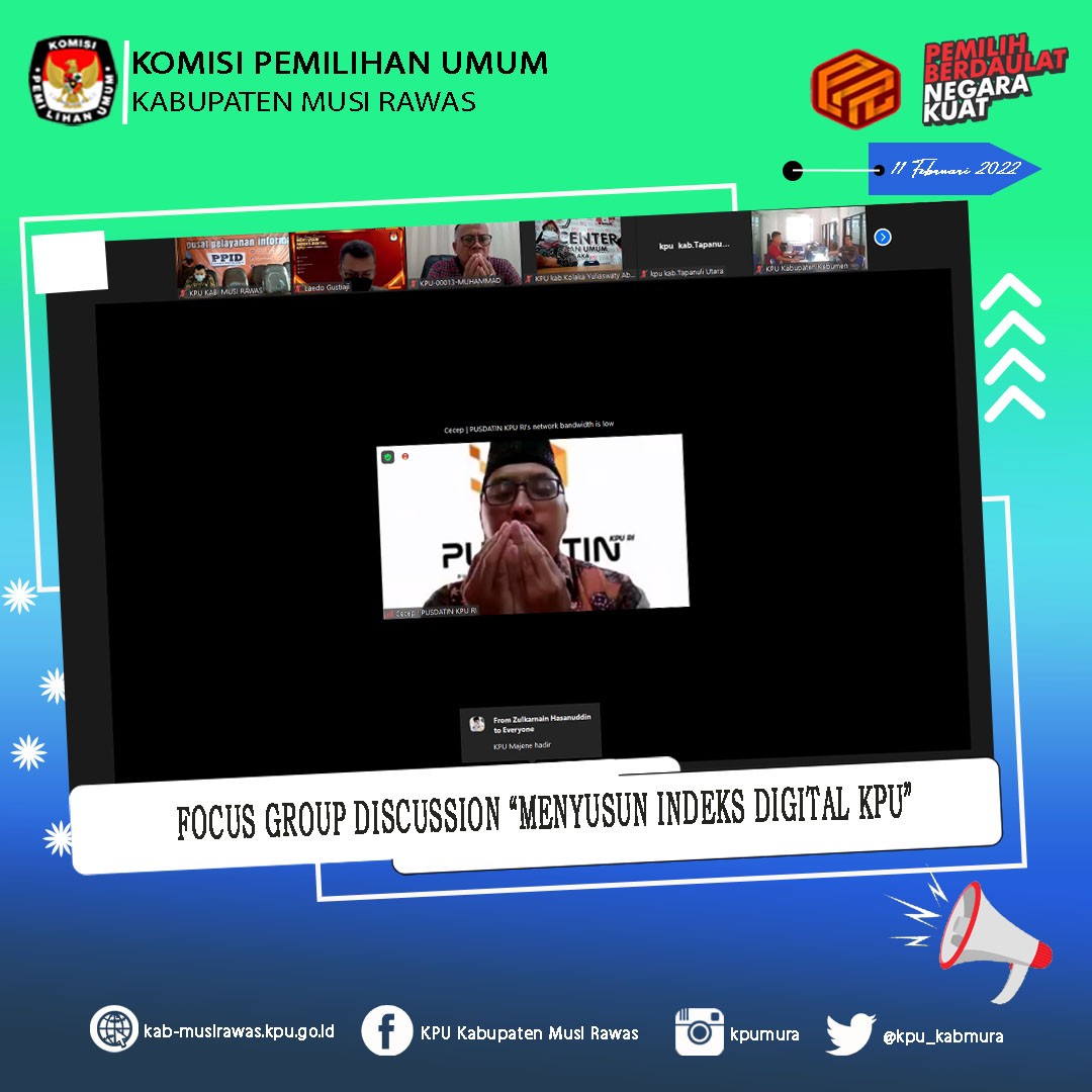 Jumat (11/02), KPU Kabupaten Musi Rawas mengikuti kegiatan "Focus Group Discussion = Menyusun Indeks Digital KPU" secara daring yang diselenggarakan oleh KPU RI.