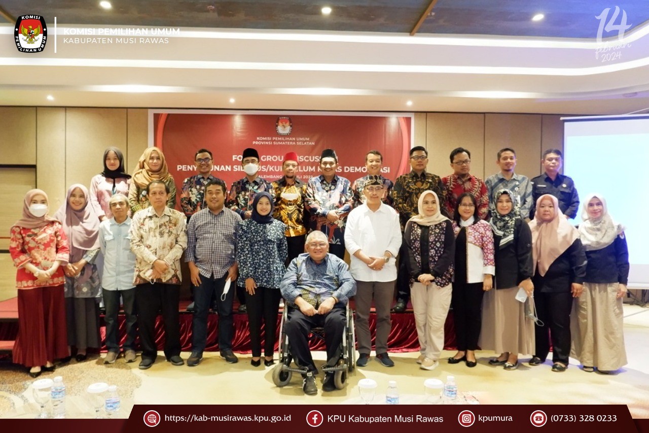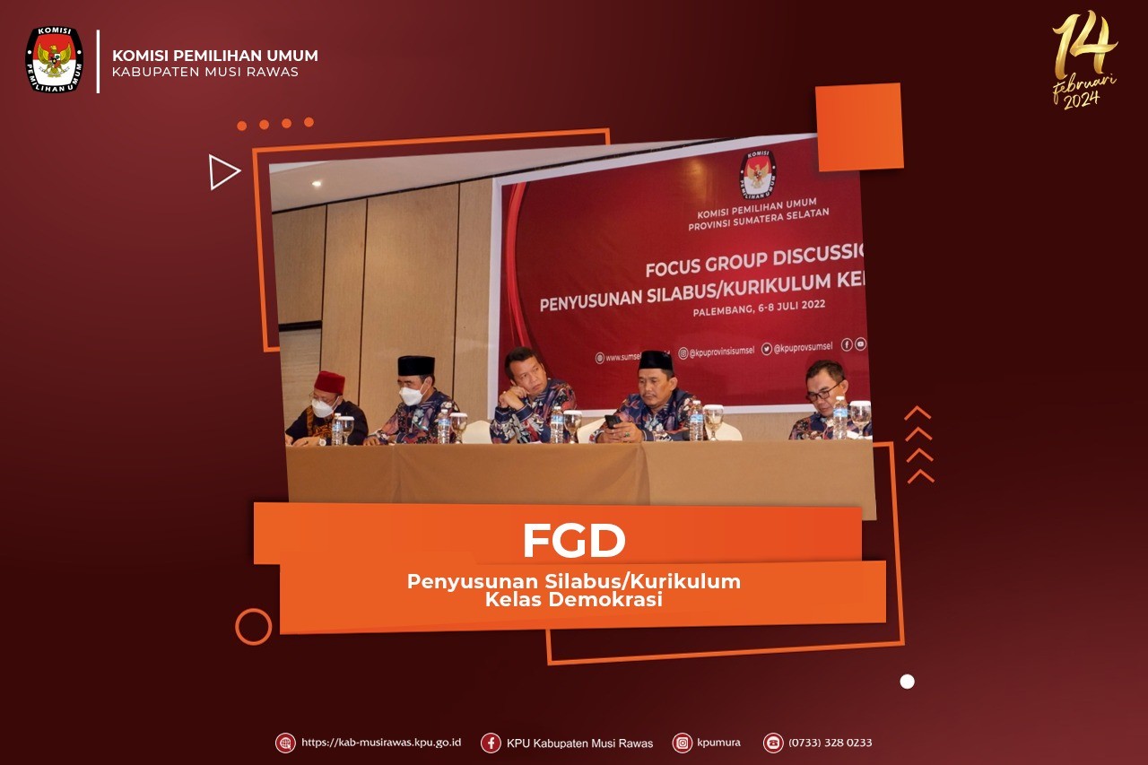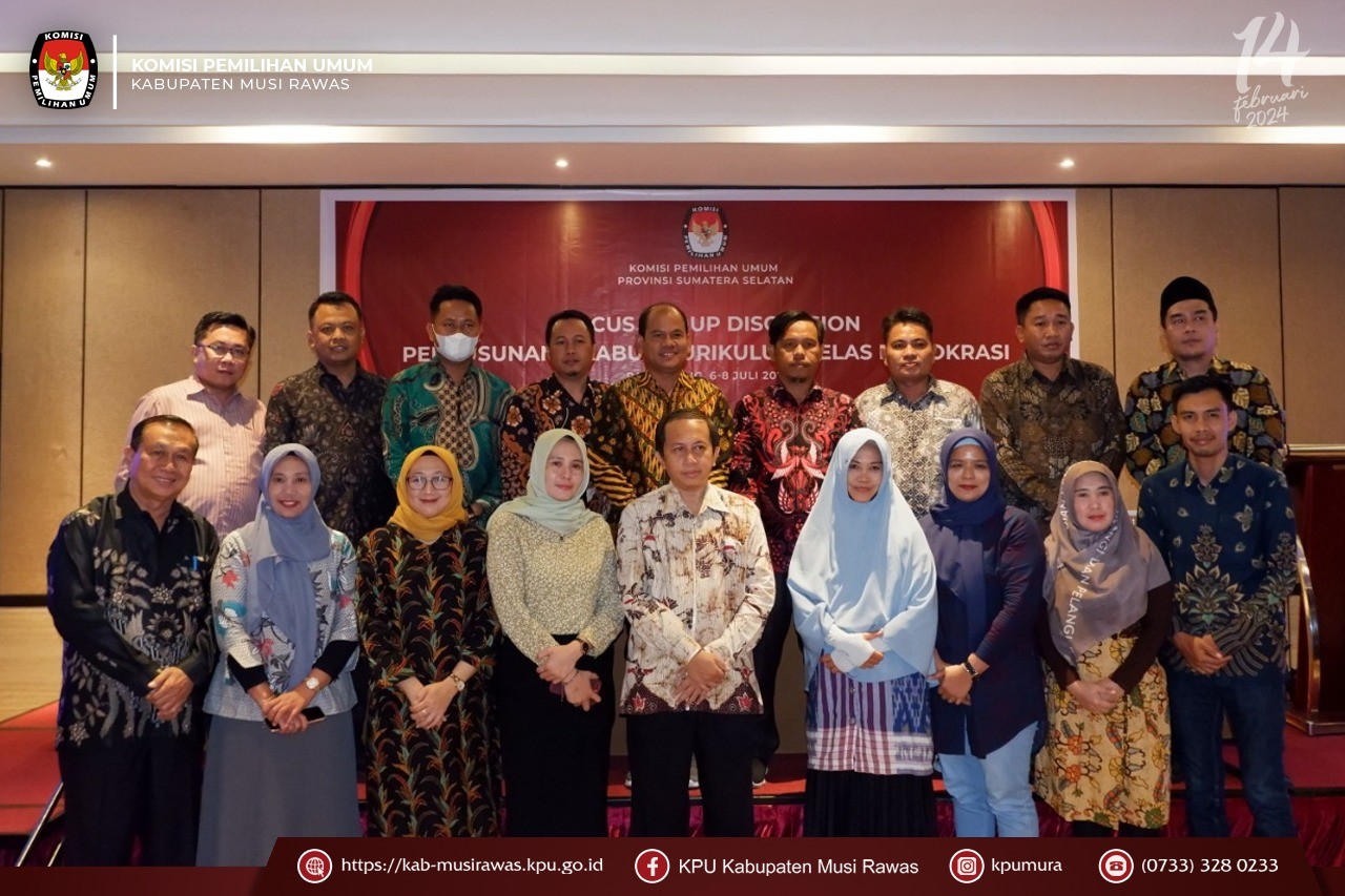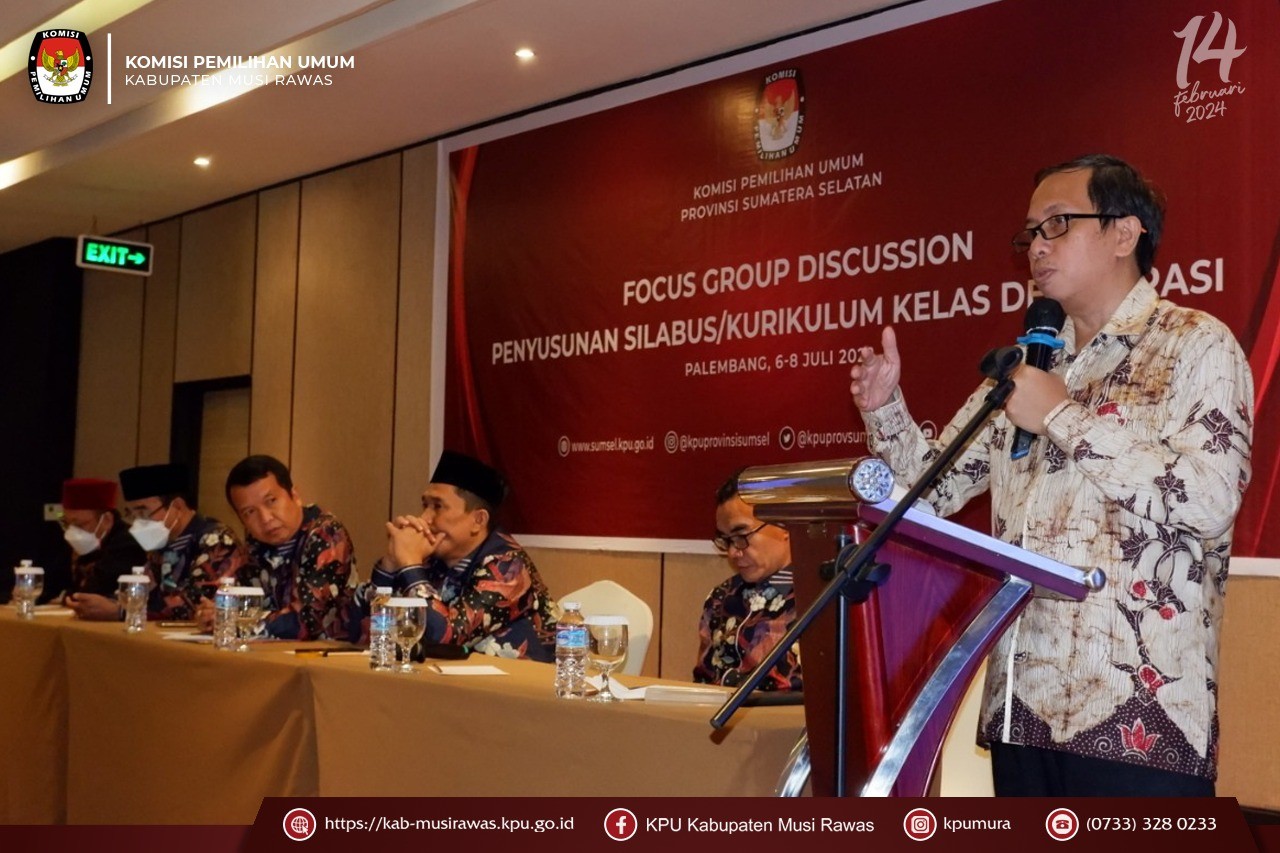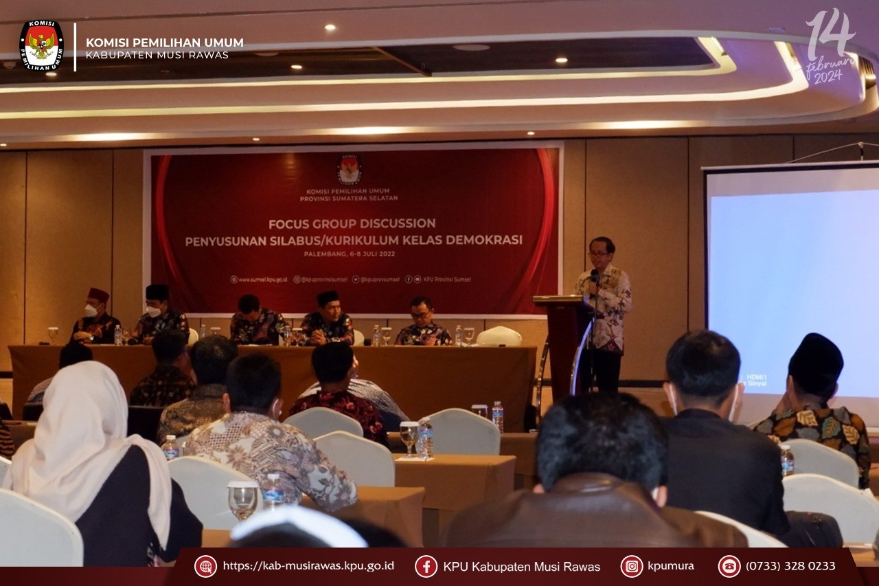 KPU Provinsi Selatan mengadakan kegiatan Focus Group Discussion "Penyusunan Silabus/Kurikulum Kelas Demokrasi" yang diikuti oleh KPU Kab/Kota se-Sumatera Selatan. Kegiatan dihadiri langsung oleh Kepala Biro Partisipasi dan Hubungan Masyarakat KPU RI, Cahyo Ariawan. Kegiatan ini dilakukan dalam rangka menyatupadukan seluruh masukan dari Satuan Kerja KPU terkait dengan materi pengajaran kelas demokrasi yang akan dilaksanakan. Terkait dengan kelas demokrasi, KPU Provinsi Sumatera Selatan akan melaksanakan 2 kegiatan yaitu Program Desa Peduli Pemilu dan Pemilihan (DP3) yang dilaksanakan di 8 Kabupaten dan Program Sekolah Demokrasi yang akan dilaksanakan di 17 Kab/Kota di Provinsi Sumatera Selatan.