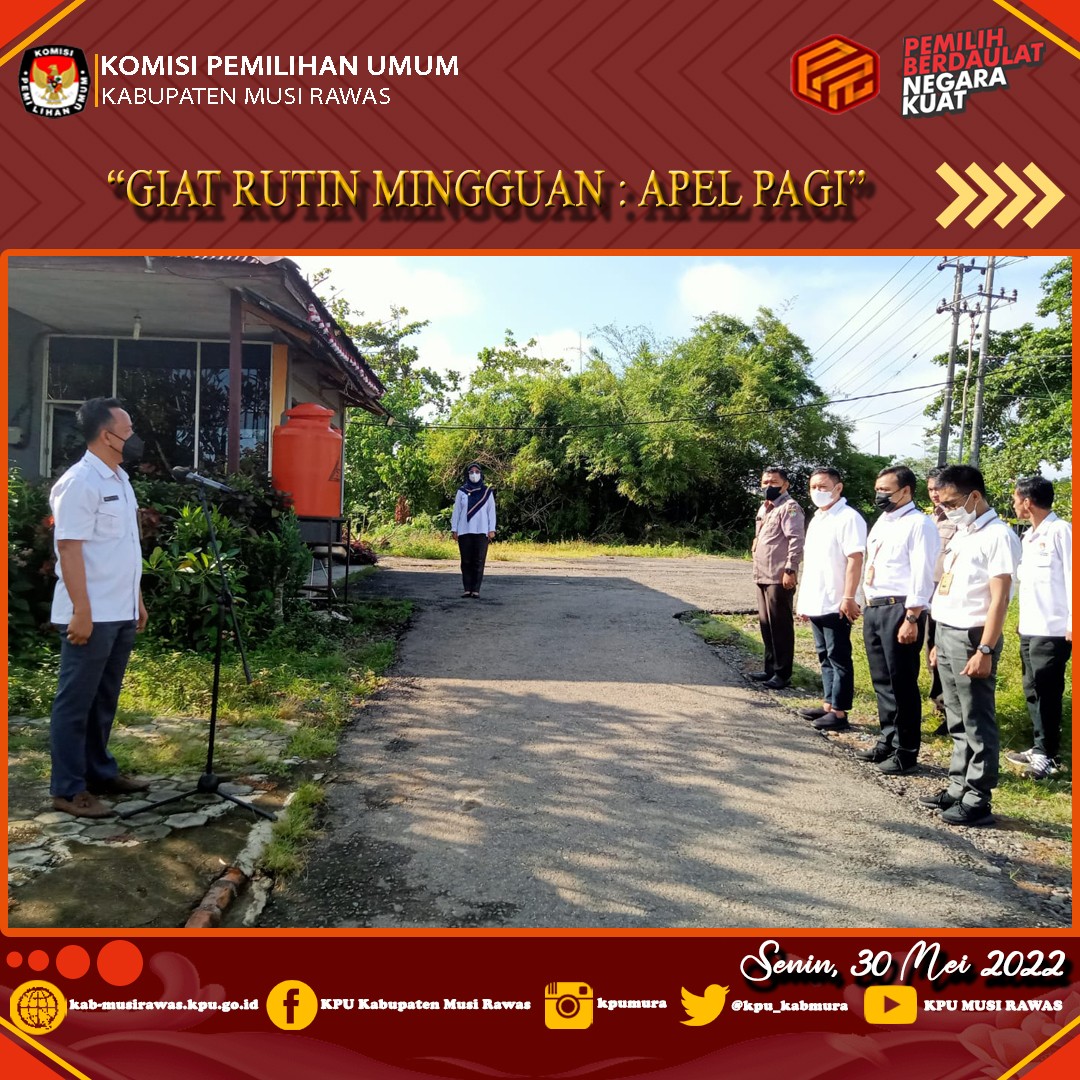 Senin (30/05), KPU Kabupaten Musi Rawas melaksanakan kegiatan rutin mingguan yaitu Apel Pagi. Kegiatan berjalan dengan lancar..