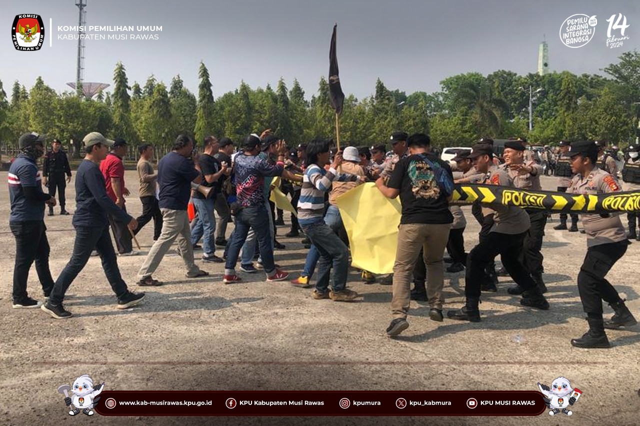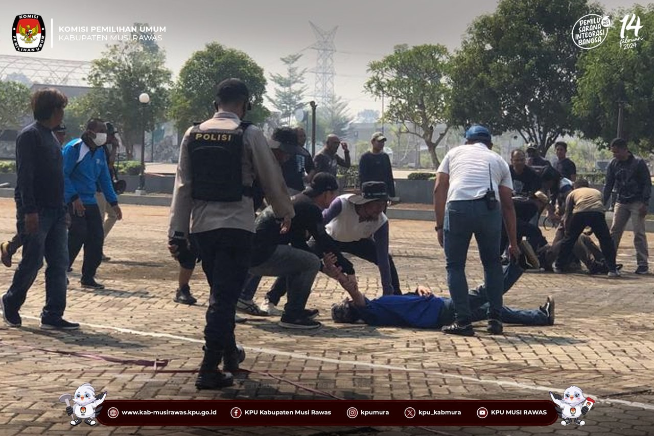 #TemanPemilih, KPU Kabupaten Musi Rawas mengikuti Kegiatan Gladi Bersih Simulasi Pengamanan Dalam Pemilihan Umum Tahun 2024 yang di selenggarakan di Taman Beregam, Muara Beliti (14/10/2023) ..