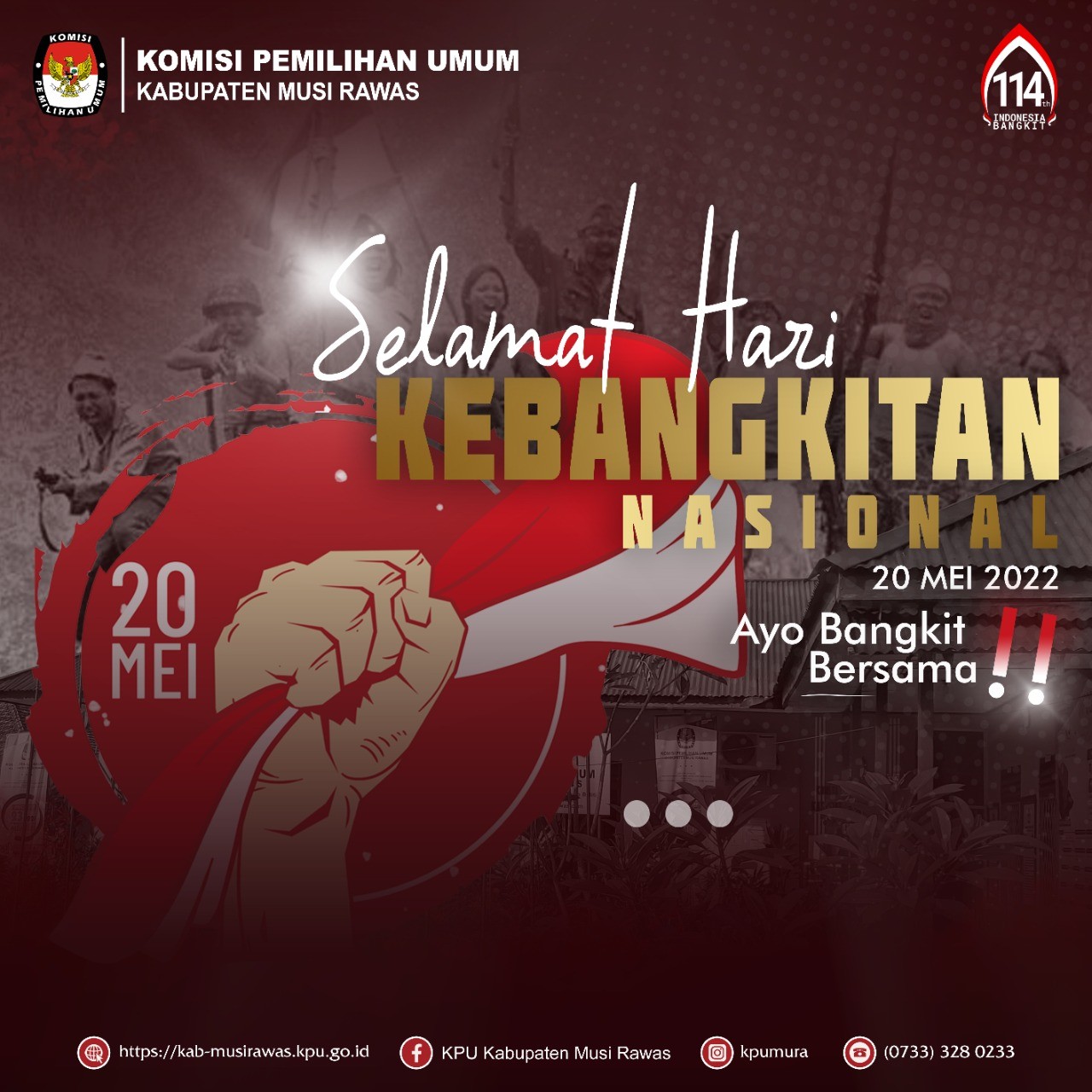 KPU Kabupaten Musi Rawas mengucapkan Selamat Hari Kebangkitan Nasional 20 Mei 2022..Ayo bangkit bersama untuk negeri tercinta, Indonesia...