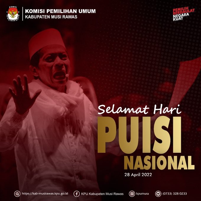#TemanPemilih KPU Kab. Musi Rawas mengucapkan Selamat Hari Puisi Nasional. Tahukah kamu bahwa Hari Puisi Nasional dirayakan bertepatan dengan peringatan hari wafatnya salah satu legenda penyair terkemuka asal Indonesia, Bapak Chairil Anwar... #KPUMelayani #PemiluSerentak2024