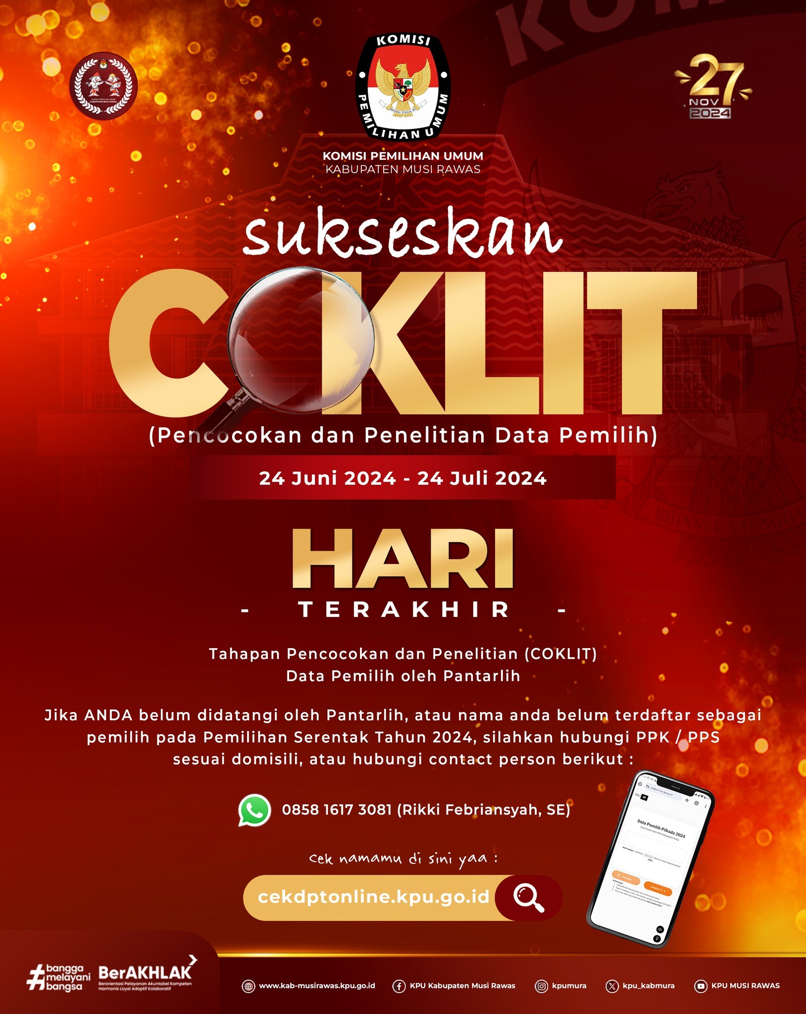 #TemanPemiih, Sukseskan COKLIT (Pencocokan dan Penelitian) Data Pemilih oleh Pantarlih yang berlangsung dari tanggal 24 Juni 2024 - 24 Juli 2024 .. .