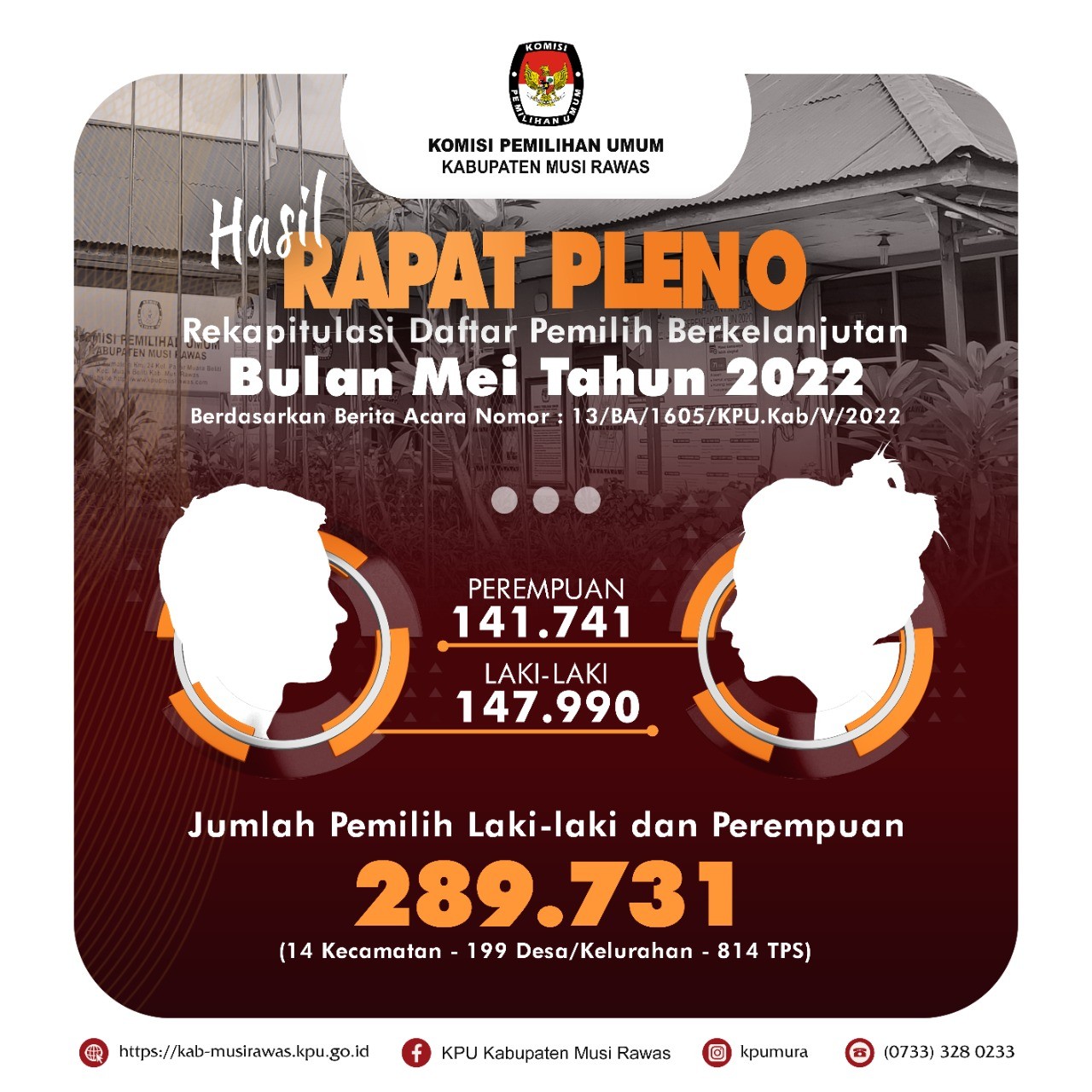 Berikut Hasil Pemutakhiran Data Pemilih Berkelanjutan KPU Kabupaten Musi Rawas Bulan Mei 2022, yuk disimak...