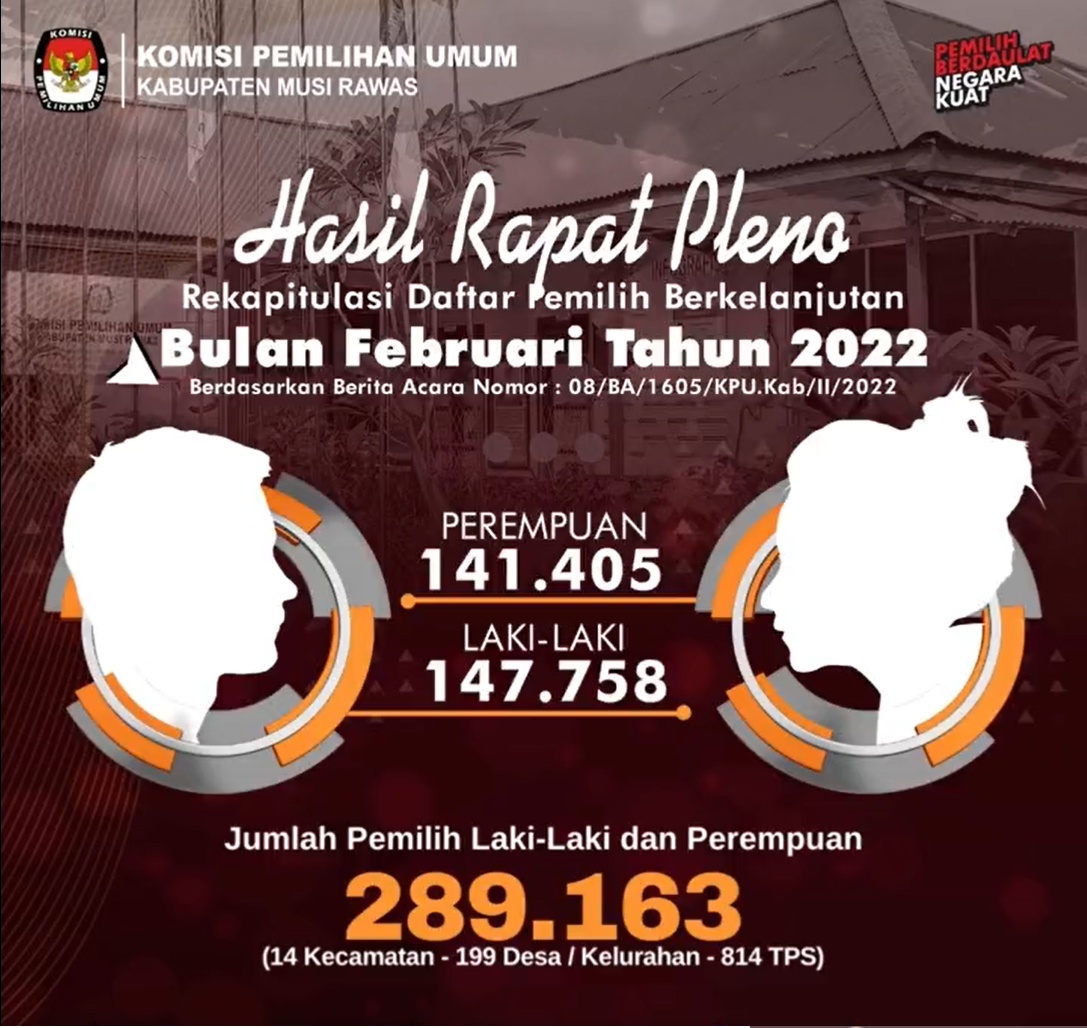 Berikut Berita Acara, Press Rilis dan Hasil Rapat Pleno Rekapitulasi Daftar Pemilih Berkelanjutan Kabupaten Musi Rawas Bulan Februari Tahun 2022..