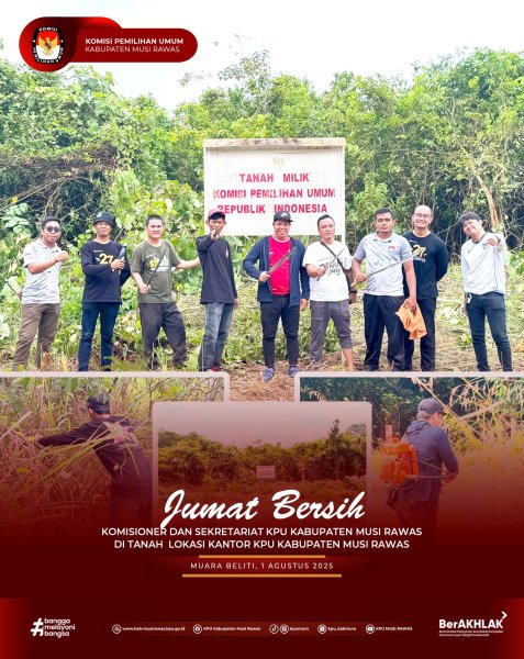 #TemanPemilih, Komisioner dan Sekretariat KPU Kabupaten Musi Rawas melaksanakan kegiatan Jumat Bersih di Lahan Kantor KPU Kabupaten Musi Rawas (1/8/2025) ..