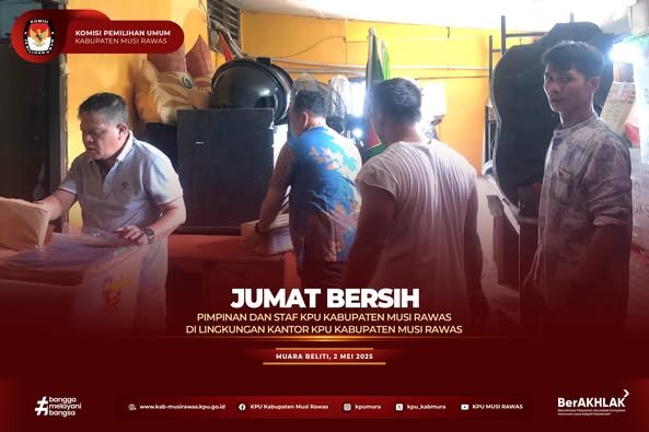 #TemanPemilih, Pimpinan dan Staf KPU Kabupaten Musi Rawas melaksanakan kegiatan Jumat Bersih di lingkungan Kantor KPU Kabupaten Musi Rawas (2/5/2025) ..