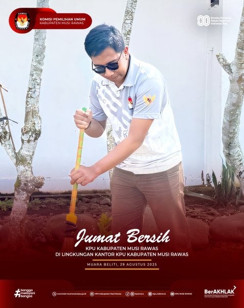 #TemanPemilih, KPU Kabupaten Musi Rawas melaksanakan kegiatan Jumat Bersih dilingkungan Kantor KPU Kabupaten Musi Rawas (29/8/2025) ..