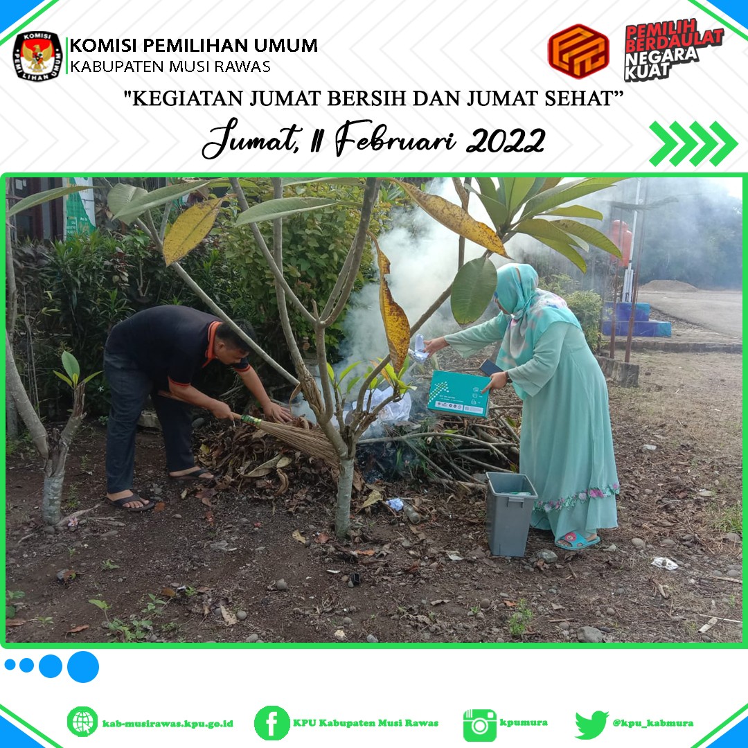 Jumat (11/02) KPU Kabupaten Musi Rawas melaksanakan kegiatan "Jumat Bersih dan Jumat Sehat" . Kegiatan diawali dengan kegiatan bersih-bersih di lingkungan kantor lalu dilanjutkan dengan kegiatan olahraga.
