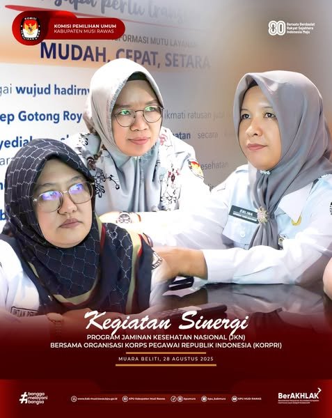 #TemanPemilih, KPU Kabupaten Musi Rawas mengikuti Kegiatan Sinergi Program Jaminan Kesehatan Nasional (JKN) bersama Korps Pegawai Republik Indonesia (KORPRI) secara daring di Kantor KPU Kabupaten Musi Rawas (28/8/2025) ..