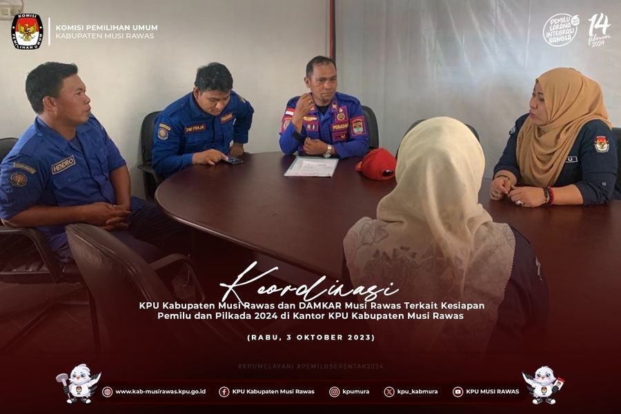 #TemanPemilih, KPU Kabupaten Musi Rawas dan DAMKAR Musi Rawas melakukan Koordinasi Terkait Kesiapan Pemilu dan Pilkada Tahun 2024 di Kantor KPU Kabupaten Musi Rawas (3/10/2023) ..