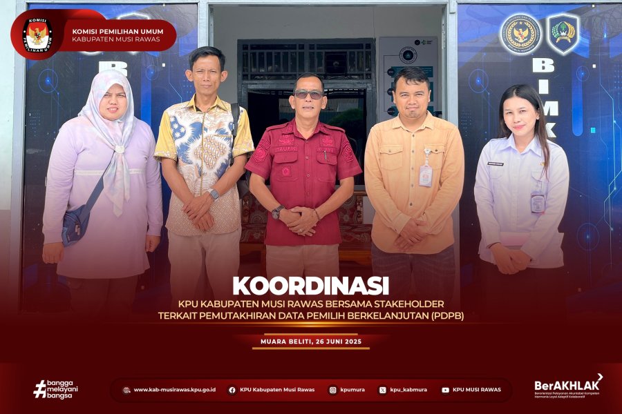 #TemanPemilih, Anggota KPU Kabupaten Musi Rawas, Bapak Akhmad Sukur, S.Pd di dampingi oleh Kasuubag Perencanaan, Data, dan Informasi beserta staf melakukan koordinasi bersama stakeholder terkait Pemutakhiran Data Pemilih Berkelanjutan (PDPB) (26/6/2025) ..