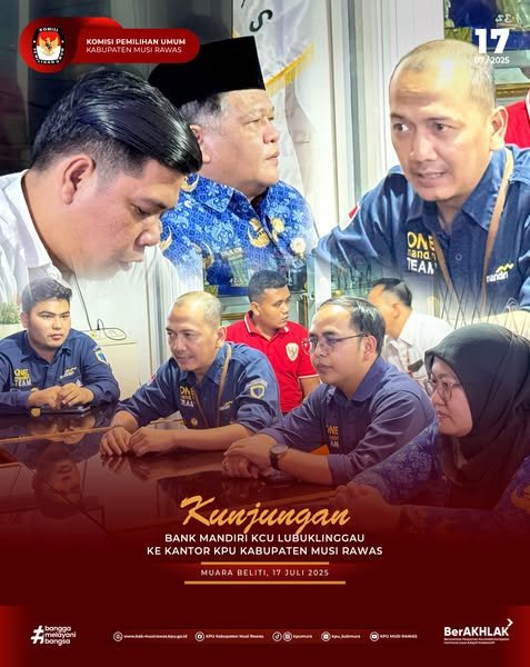 #TemanPemilih, KPU Kabupaten Musi Rawas menerima kunjungan dari Bank Mandiri KCU Lubuklinggau di Kantor KPU Kabupaten Musi Rawas (17/7/2025) ..