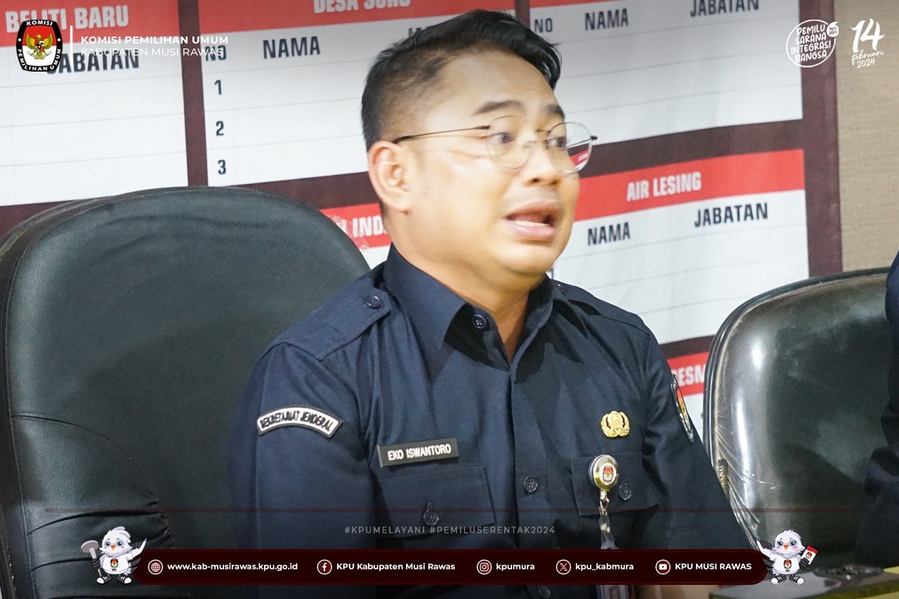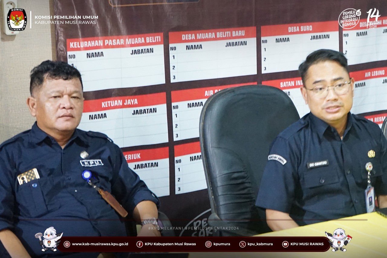 #TemanPemilih, KPU Kabupaten Musi Rawas Menerima Kunjungan Kerja Plt. Sekretaris KPU Provinsi Sumatera Selatan, Bapak Eko Iswantoro dalam rangka supervisi dan monitoring kesiapan sarana dan prasarana dalam menyongsong Pemilihan Umum Tahun 2024