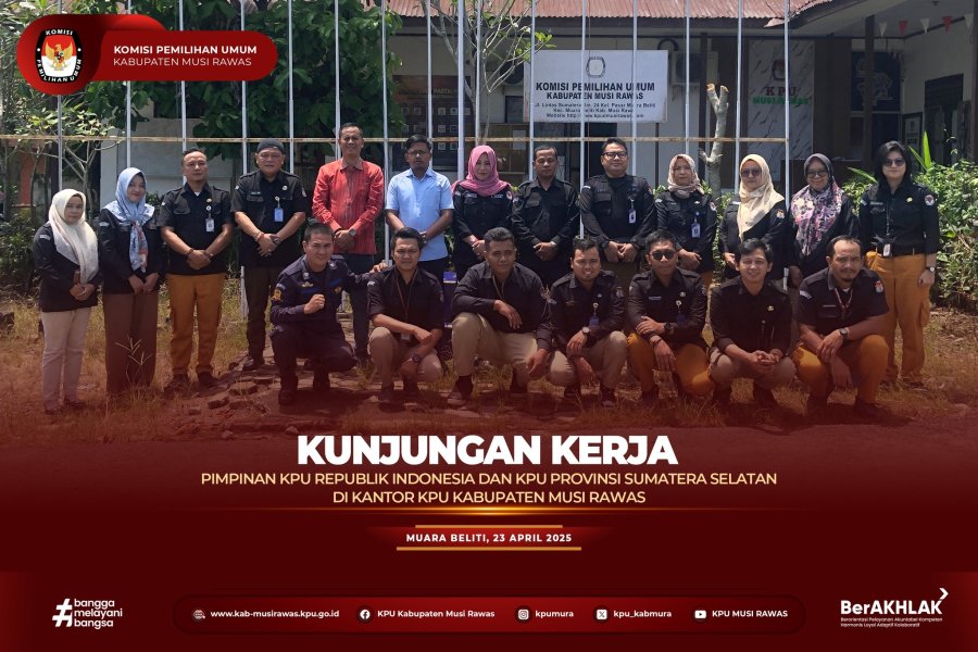 #TemanPemilih, Anggota KPU Republik Indonesia, Bapak Idham Holik berserta Anggota KPU Provinsi Sumatera Selatan, Bapak Handoko dan Sekretaris KPU Provinsi Sumatera Selatan Bapak Eko Iswantoro melakukan kunjungan kerja ke Kantor KPU Kabupaten Musi Rawas (23/4/2025) ..