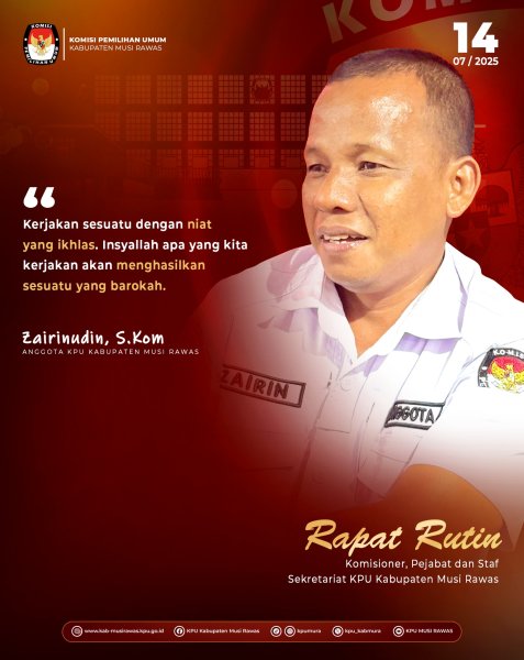 Kutipan Anggota KPU Kabupaten Musi Rawas, Bapak Zairinudin, S.Kom. pada Rapat Rutin (14/07/2025)