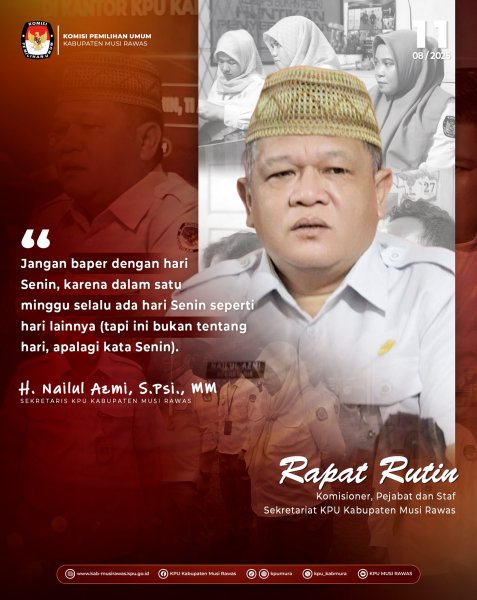 #TemanPemilih, Sekretaris KPU Kabupaten Musi Rawas, Bapak H. Nailul Azmi, S.Psi., MM berpesan untuk selalu membangkitkan semangat setiap awal minggu.