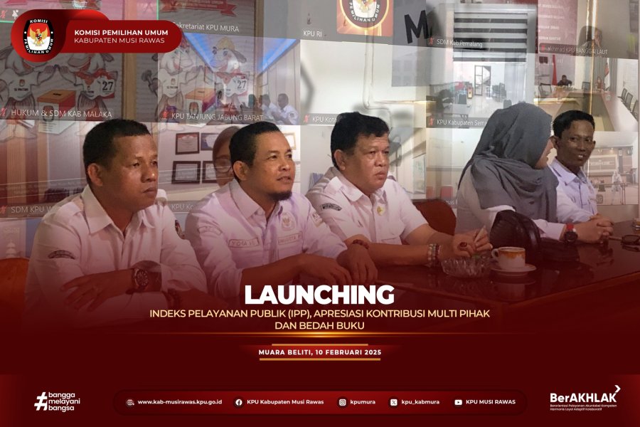 #TemanPemilih, KPU Kabupaten Musi Rawas mengikuti Launching Indeks Pelayanan Publik (IPP), Apresiasi Kontribusi Multi Pihak dan Bedah Buku yang diselenggarakan oleh KPU Republik Indonesia secara daring di Kantor KPU Kabupaten Musi Rawas (10/2/2025) ..