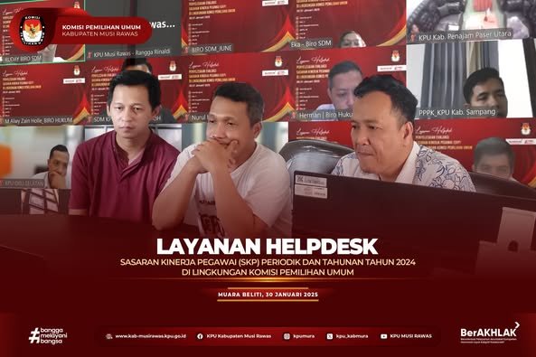 #TemanPemilih, Sekretariat KPU Kabupaten Musi Rawas Mengikuti Layanan Helpdesk Evaluasi Sasaran Kinerja Pegawai (SKP) Periodik dan Tahunan Tahun 2024 di Lingkungan Komisi Pemilihan Umum secara daring di Kantor KPU Kabupaten Musi Rawas (30/1/2025) ..