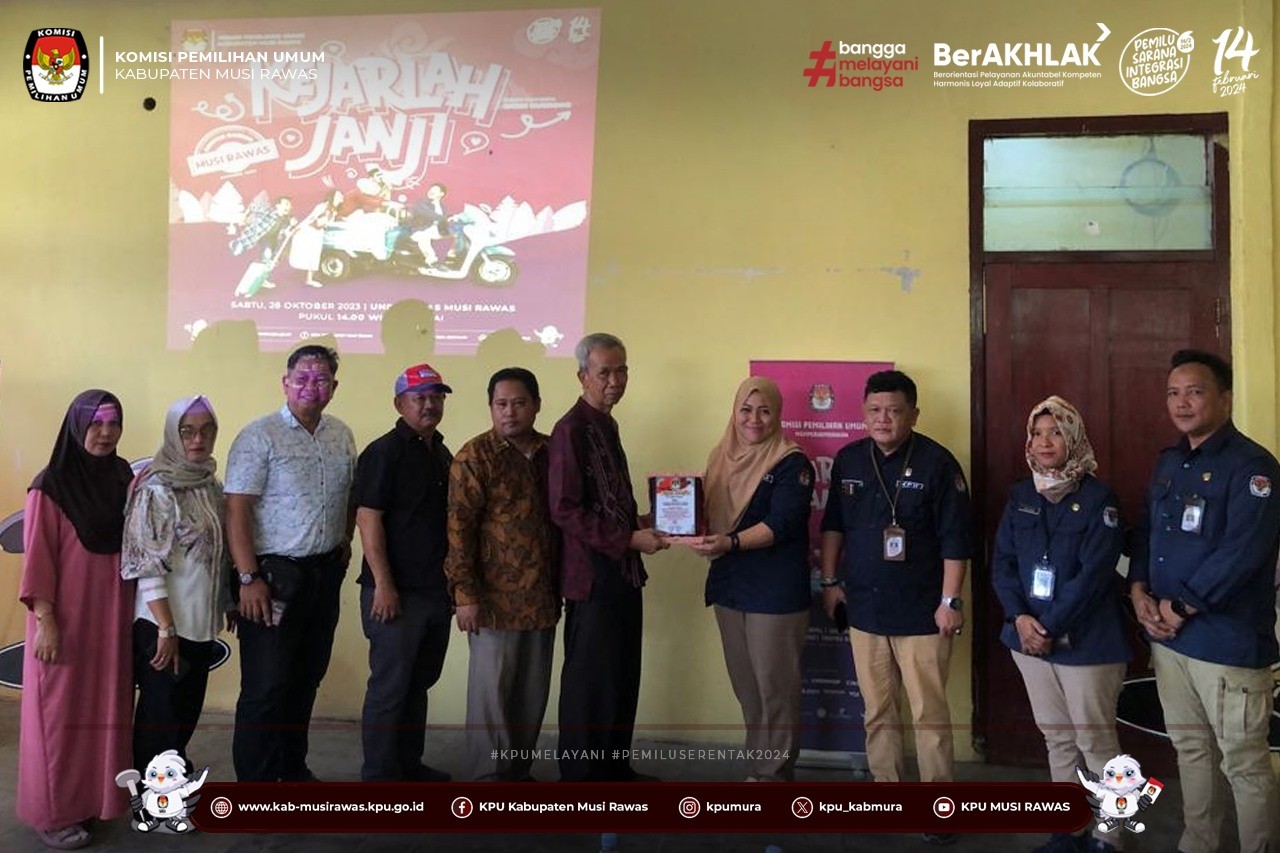 #TemanPemilih, dalam rangka upaya peningkatan partisipasi masyarakat dalam penyelenggaraan Pemilu tahun 2024 dengan menyasar pemilih pemula dan pemilih muda, KPU Kabupaten Musi Rawas melaksanakan acara Nonton Bareng #film #KejarlahJanji yang berlangsung di Universitas Musi Rawas dalam rangka memperingati Hari Sumpah Pemuda (28/10/2023) ..