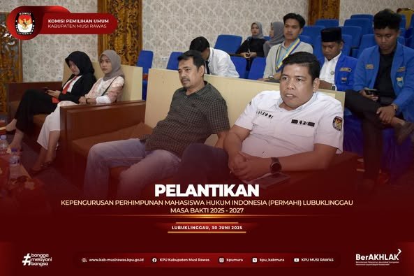 #TemanPemilih, Anggota KPU Kabupaten Musi Rawas Dicisi Hukum dan Pengawasan, Bapak Hengki Tornado, S.,St, MH menghadiri kegiatan Pelantikan Kepengurusan PERMAHI Lubuklinggau Masa Bakti 2025–2027, yang dirangkaikan dengan Simposium Hukum di Kota Lubuklinggau (30/6/2025) ..