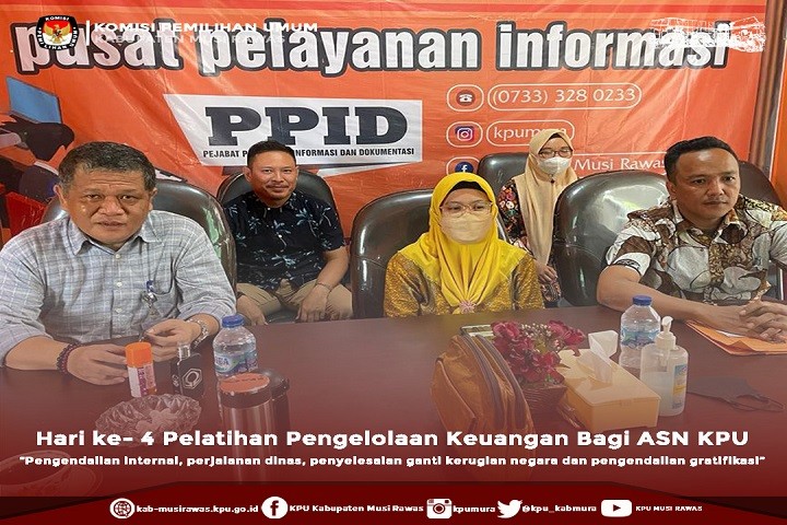 KPU Kab. Musi Rawas kembali mengikuti pelatihan keuangan bagi ASN KPU hari ke-4. Pada hari ke-4 pelatihan membahas pengendalian internal, perjalanan dinas, penyelesaian ganti kerugian negara dan pengendalian gratifikasi...