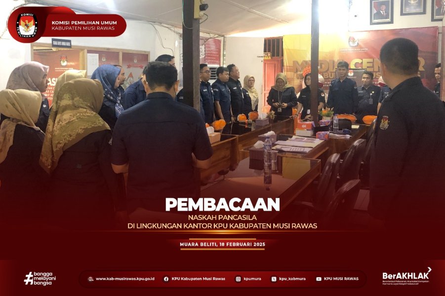 #TemanPemilih, Menindaklanjuti Surat Kementeriaan Sekretariat Negara Republik Indonesia Nomor : B-32/KSN/TU.00/01/2025 dan Surat KPU Republik Indonesia Nomor : 350/PK.02-SD/03/2025 Perihal Pemberitahuan Untuk Memperdengarkan Lagu Kebangsaan Indonesia Raya dan Naskah lainnya, Komisioner dan Sekretariat KPU Kabupaten Musi Rawas melakukan pembacaan naskah Pancasila di Kantor KPU Kabupaten Musi Rawas (18/2/2025) ..