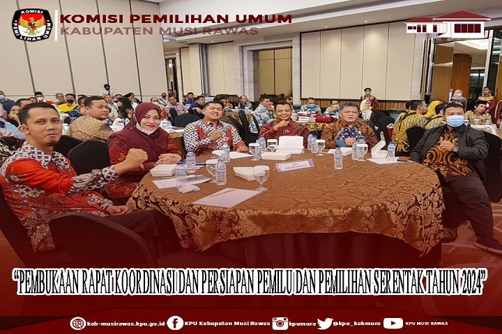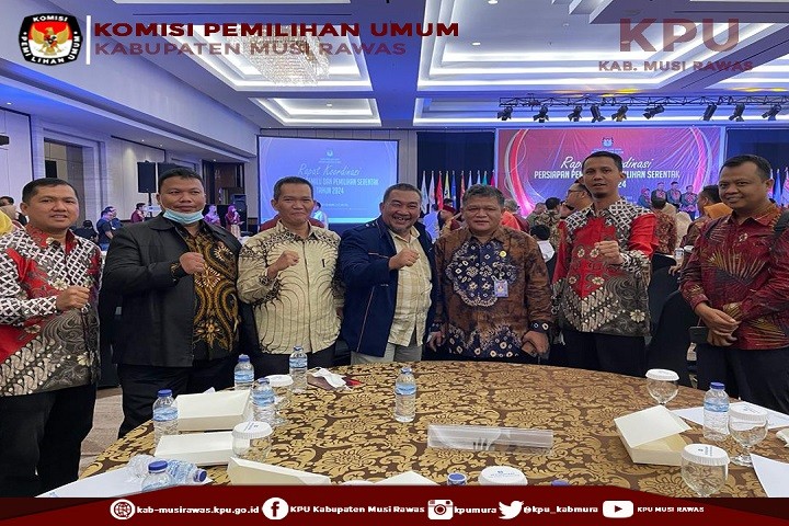 Ketua dan Anggota KPU Kabupaten Kab Musi Rawas, Sekretaris KPU Kab Musi Rawas dan seluruh Kasubbag menghadiri pembukaan Rapat Koordinasi Persiapan Pemilu dan Pemilihan Serentak Tahun 2024.